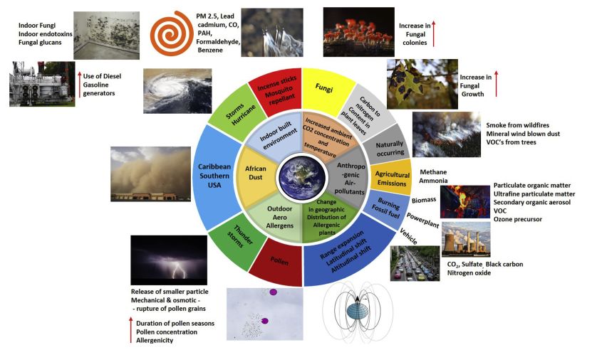 天氣和氣候變化是一個持續(xù)變化的過程,影響過敏和哮喘。本報告旨在提供自上次氣候變化審查以來的信息,重點關(guān)注哮喘疾病。PubMed和互聯(lián)網(wǎng)搜索主題包括氣候和天氣變化、空氣污染、顆粒物、溫室氣體、交通、昆蟲棲息地和癥狀緩解,以及作者個人提供的參考資料。氣溫升高和大氣中二氧化碳含量增加引起的室外空氣過敏原模式變化是導(dǎo)致花粉季節(jié)持續(xù)時間延長、花粉產(chǎn)量增加和花粉過敏性可能增加的主要因素。預(yù)計氣候變化對室內(nèi)空氣污染的威脅包括洪水引發(fā)的微生物和霉菌生長,人員流離失所以及暴露工人呼吸保護的需要。室內(nèi)燃燒驅(qū)蚊劑造成的空氣污染是昆蟲棲息地區(qū)域增加的潛在預(yù)期結(jié)果?;剂先紵a(chǎn)生的空氣污染和與交通有關(guān)的排放會改變呼吸防御機制,并與特定的過敏原協(xié)同作用,增強免疫原性,使易感受試者的哮喘惡化。社區(qū)環(huán)保的努力可以顯著減少空氣污染,從而減少溫室氣體排放,改善空氣質(zhì)量。過敏癥專家應(yīng)對天氣模式變化的方法應(yīng)該是綜合的,并且是預(yù)期的,以保護高?;颊摺?br />