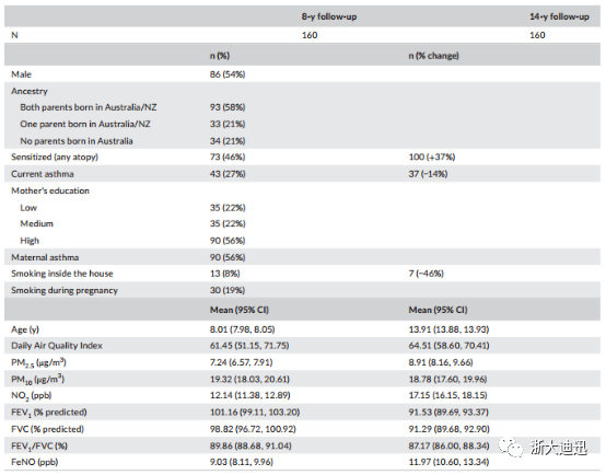方法:本研究對(duì)一組居住在澳大利亞悉尼的高危兒童在8歲和14歲時(shí)進(jìn)行肺活量測(cè)定和呼出一氧化氮(FeNO)測(cè)定。以肺功能測(cè)定當(dāng)天及之前3天的環(huán)境花粉濃度作為暴露測(cè)量。住宅區(qū)的綠色度是從衛(wèi)星圖像中提取出來的。我們模擬了6種花粉類型與肺功能和FeNO的關(guān)系。我們也評(píng)估了住宅綠化的改善效果。
