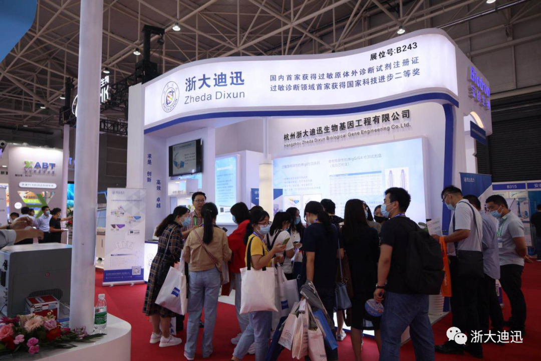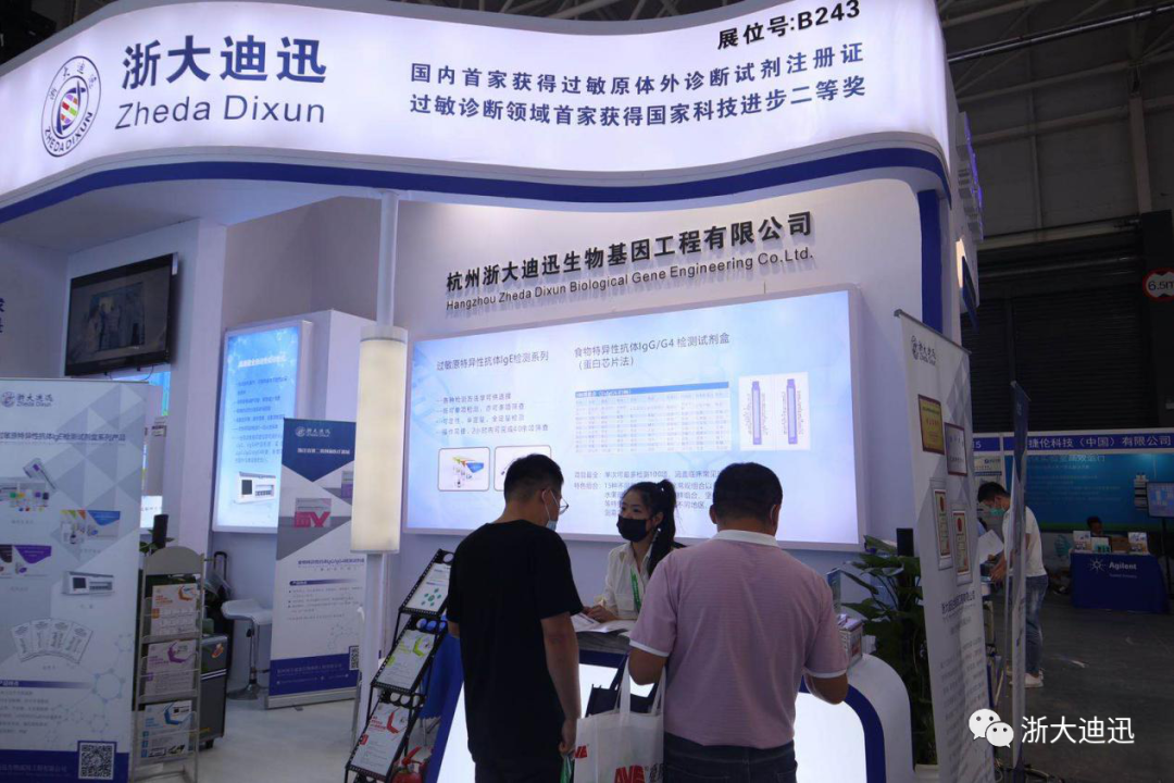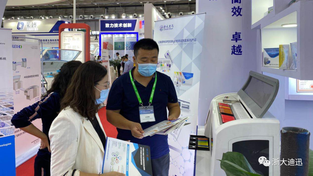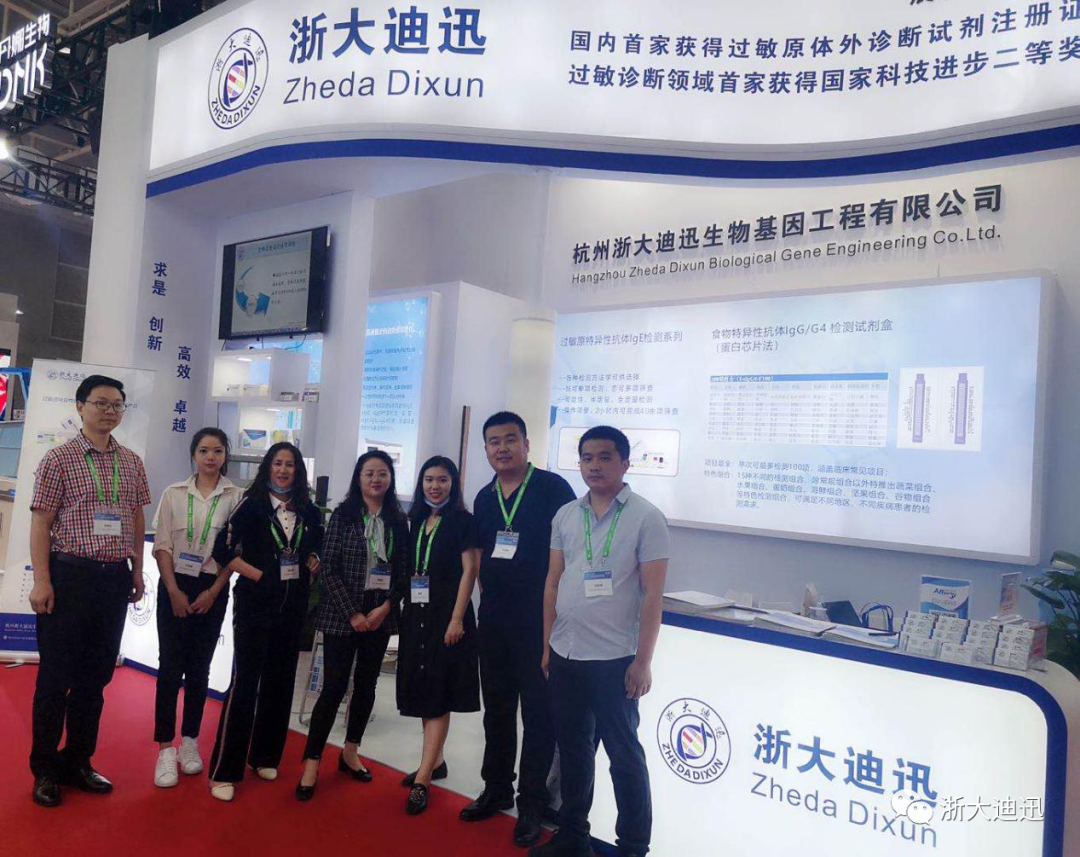 100項食物特異性抗體IgG/G4檢測試劑盒(蛋白芯片法)。會中,浙大迪迅展位現(xiàn)場熙熙攘攘,前來參觀指導的專家領(lǐng)導絡(luò)繹不絕。